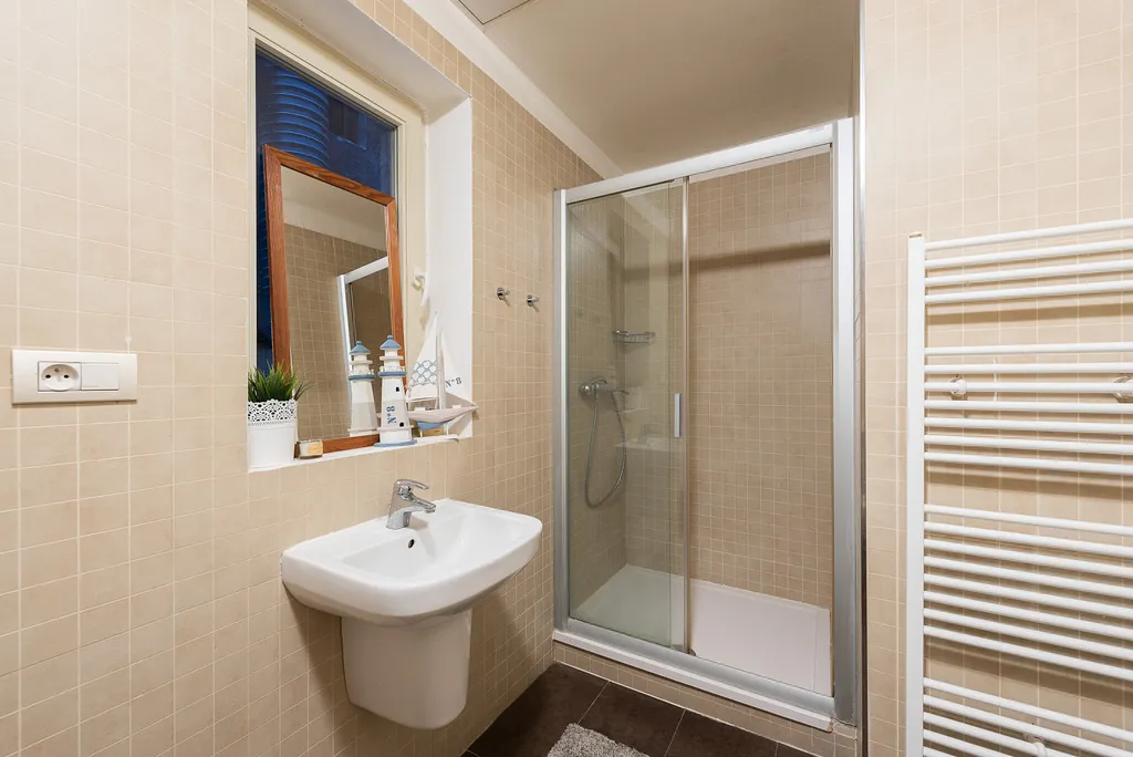 koupelna se sprchovým koutem, WC, připojení pro pračku