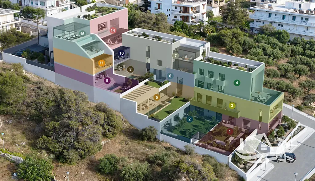 Projekt byl pečlivě architektonicky navržen s důrazem na maximální propojení interiéru s okolní krajinou a nekonečným horizontem moře. Prostorné apartmány prémiové kvality jsou doplněny promyšlenými venkovními prostory, včetně stíněných teras, soukromých bazénů nebo luxusních jacuzzi.