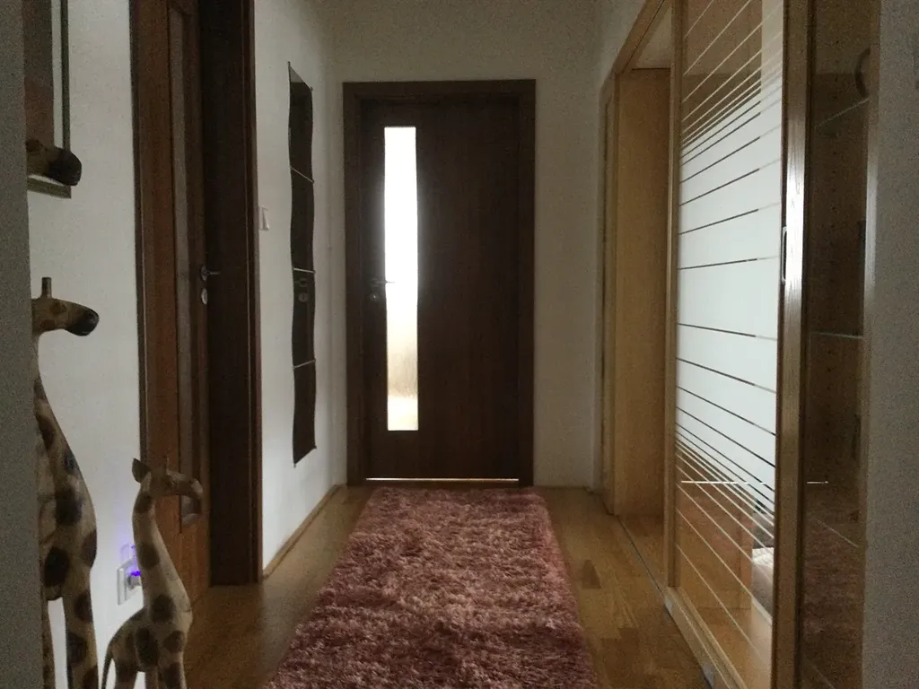 Ložnici s vestavěnou šatní skříní a vlastní koupelnou včetně rohové vany, WC a sprchovacím koutem + průhoz prádla do suterénu)