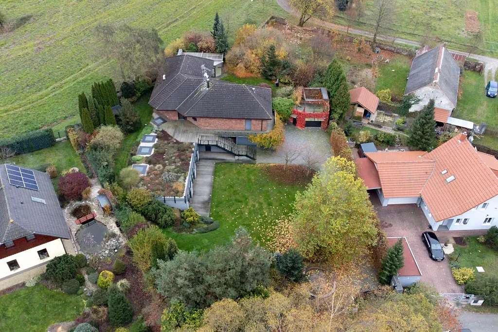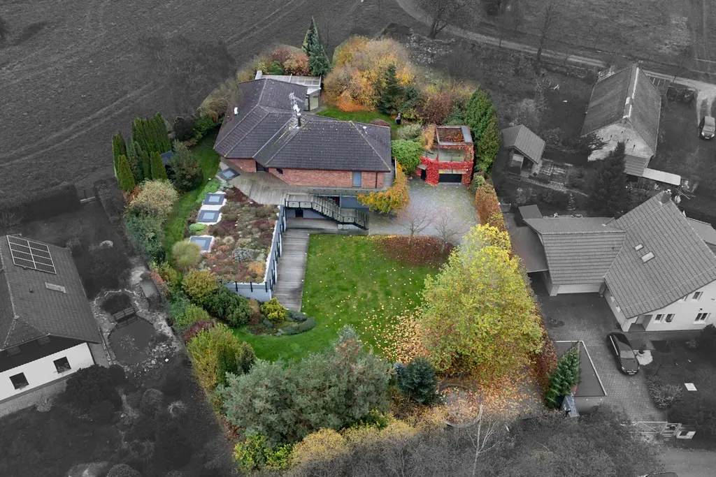 Tento rodinný dům se 7 pokoji a kuchyňským koutem nabízí komfortní a prostorné bydlení v klidné vesnici obklopené lesy, což zajišťuje soukromí a příjemné prostředí. S jihozápadní orientací a efektivním využitím svažitého terénu je interiér příjemně prosvětlený a zahrada o rozloze 1585 m² s vrostlou zelenou vegetací, poskytuje dostatek prostoru pro různé aktivity a relaxaci. Dům byl přestavěn z původní budovy a v roce 2012 byla přistavěna nová část s vegetační střechou.