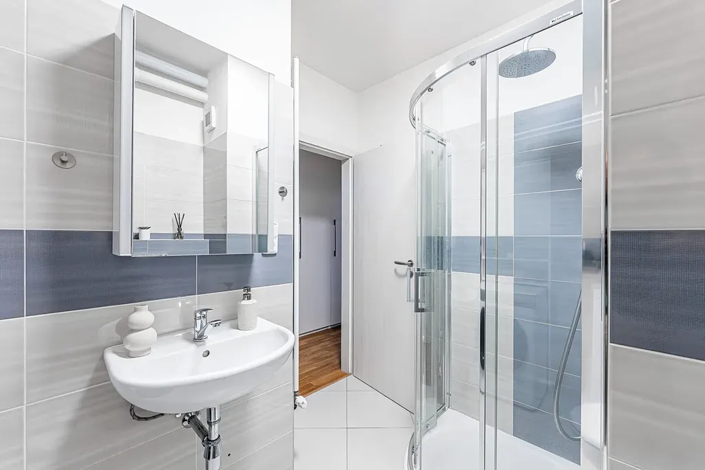 K dispozici jsou dvě plnohodnotné koupelny – horní koupelna s vanou pro klidné večery a koupelna v přízemí se sprchovým koutem pro rychlé každodenní fungování. Tento prvek výrazně zvyšuje komfort bydlení.