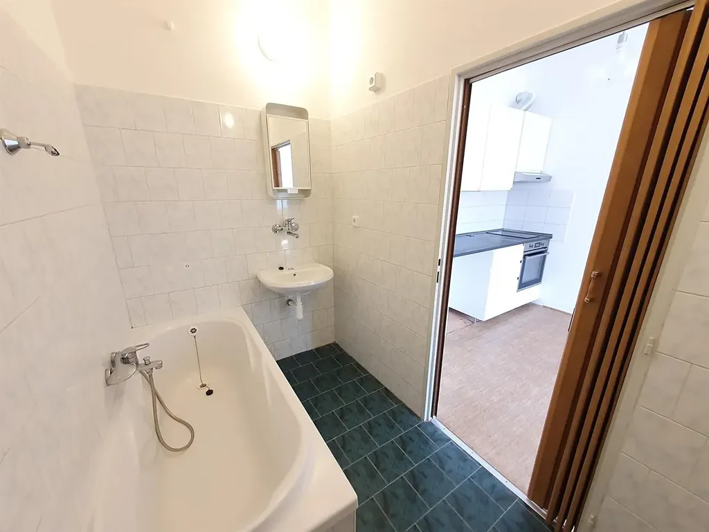 Pěkný světlý byt s balkonem 2+kk 50 m2, Praha 3, Žižkov/Jarov, ul. U kněžské louky, v 1. patře cihlového domu, v bytě jsou dřevěné podlahy, topení plyn, plastová okna, ložnice s přístupem na balkon, kuchyňská linka s lednicí je součástí obývacího pokoje, koupelna s vanou, samostatná toaleta, nezařízeno - pračka a nábytek po dohodě. Výhled do klidné a zelené zahrady.