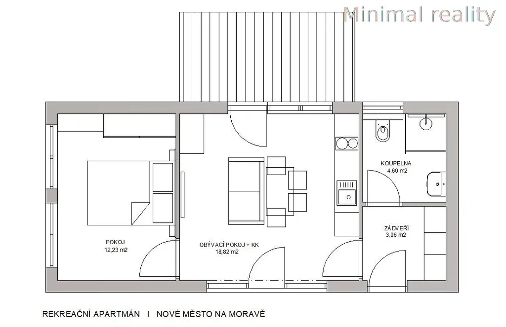 obývací pokoj s kuchyňským koutem 18,82 m2,