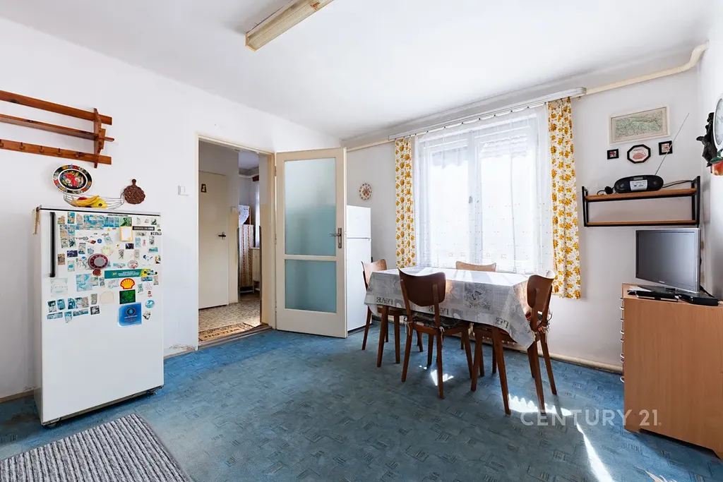 Původní část domu, kde se nachází bytová jednotka 2+1 je tvořena vstupní chodbou, kuchyní s jídelním koutem, obývacím pokojem, ložnicí, koupelnou, samostatným WC a komorou.