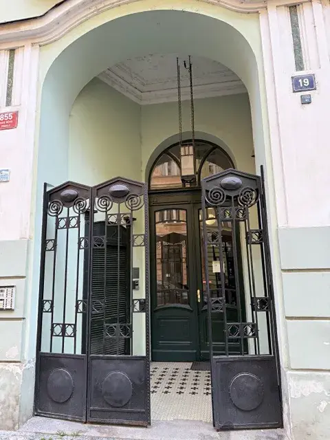 Byt se nachází v secesním domě s recepcí, kde je zároveň možnost pronájmu garážového stání přímo v domě,což je v centru města výhodou.
