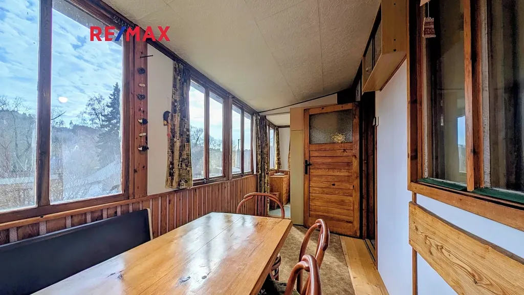 Prodej chaty Stříbrná Skalice - Hradové Střimelice, osada Kloučka. Nemovitost je pár kroků od řeky Sázavy, není v zátopové oblasti. Nabízíme Vám prodej velmi udržované chaty 48m2. Chata stojí na vlastním oploceném pozemku o celkové výměře 307m2, přední část rovinatá, zadní část mírně svažitá. Na pozemku se nachází kopaná studna s čerpadlem, voda není momentálně do objektu zavedena, majitelé ji používají pouze jako užitkovou. Zavedení vody do chaty má jednoduché řešení, se kterým Vás ráda seznámím. Objekt je napojen na elektrický proud. Chata byla postavena koncem šedesátých let, je ve velmi dobrém technickém stavu. Nemovitost stojí na zděné podezdívce, ve které jsou dva praktické, suché sklepy . Stěny hlavní obytné části jsou původní montovaná dřevostavba, z vnějších dvou stran přiizolovaná omítnutou izolací z pěnového polystyrenu. Kolem dalších dvou stran jsou obytné verandy, přední veranda slouží jako velmi pěkné posezení s výhledem na řeku Sázavu. Okna dřevěná, v přední části opatřená fólií proti slunci. Podlahy dřevěné. Vytápění - teplovzdušná kamna na dřevo. Střecha plechová, komín v dobrém stavu. Na zahradě je zděné ohniště s posezením, ovocné stromy a místo pro pěstování zeleniny. Dispozice: - vstup přes boční verandu, kde se nachází WC. Odpad je sveden do jímky. - hlavní obytná místnost s kamny, ze které je vstup do kuchyňky s oknem, vstup do ložnice s oknem a na obytnou verandu, kde je koupelna se sprchovým koutem a průtokovým ohřívačem vody. Nemovitost se nachází ve velmi atraktivní rekreační oblasti mimo záplavové území u řeky Sázavy, osada Kloučka. Řeka pár kroků, les v nejbližším okolí. Je vhodná pro rybáře, sportovce, houbaře, nebo jen tak pro milovníky přírody a odpočinku. Dobrá dopravní dostupnost, autobusem, vlakem, autem Praha cca 40 min., dálnice D1 necelých 8 km. V docházkové vzdálenosti je známá a výborná restaurace Na Marjánce, nebo rekreační středisko Lávka. Nákupní příležitosti ve Stříbrné Skalici, nebo v Choceradech. Prodávající si vyhrazuje právo vybrat kupujícího na základě jím zvolených kritérií.
