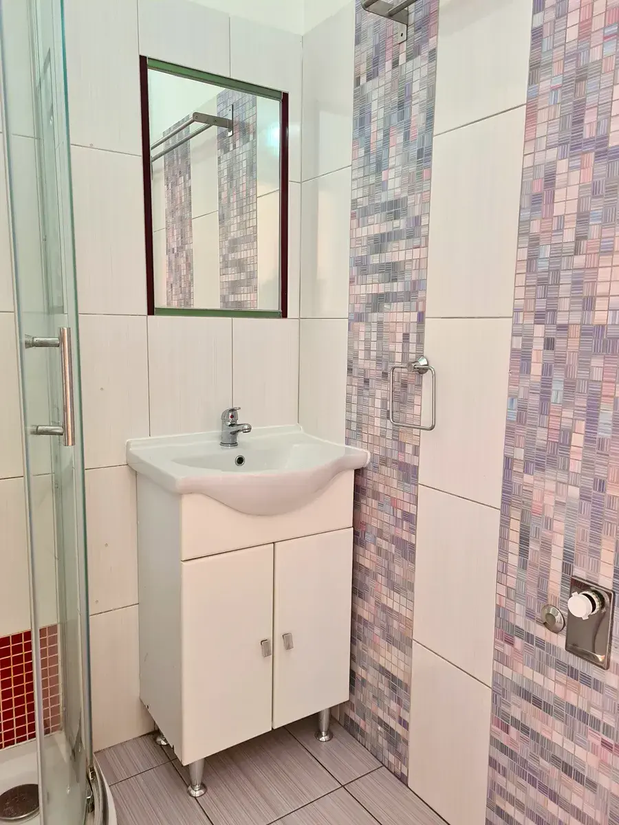 V koupelně umístěn sprchový kout. Okna v celém bytě plastová. Ve všech místnostech umístěny závěsné radiátory. Nové stoupačky, dálkové odečty tepla.