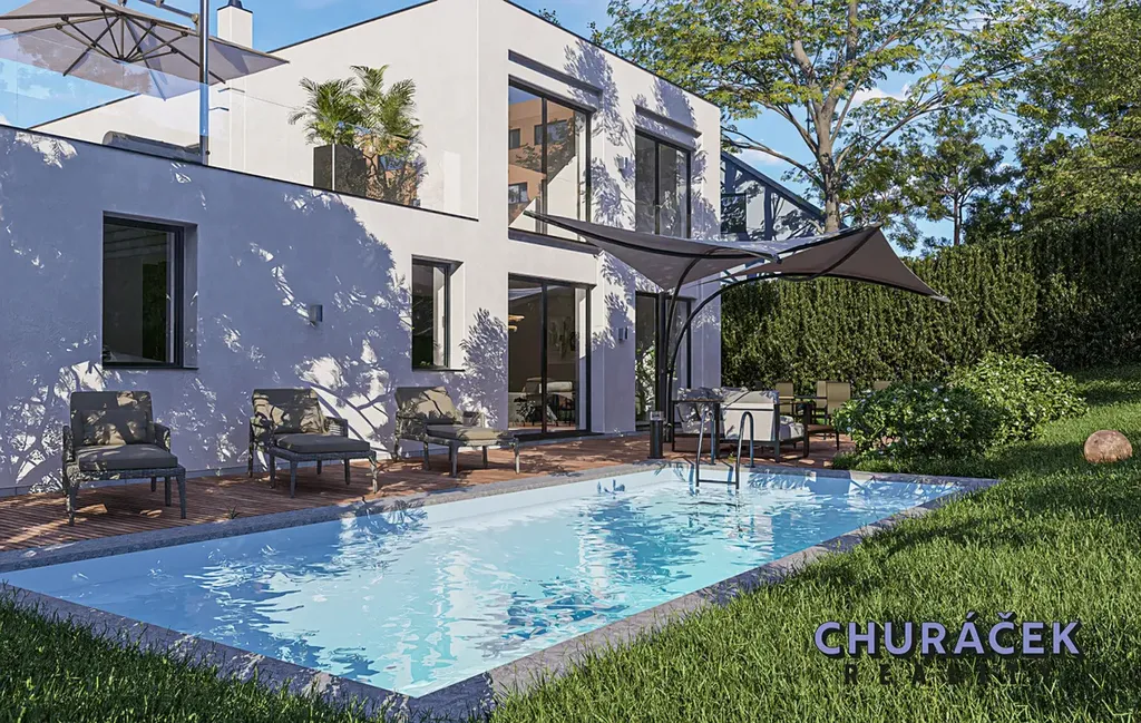 3 koupelny, prostorná garáž pro dvě auta, bazén navazující na terasu z obývacího pokoje, tady Vám opravdu nebude chybět nic.
