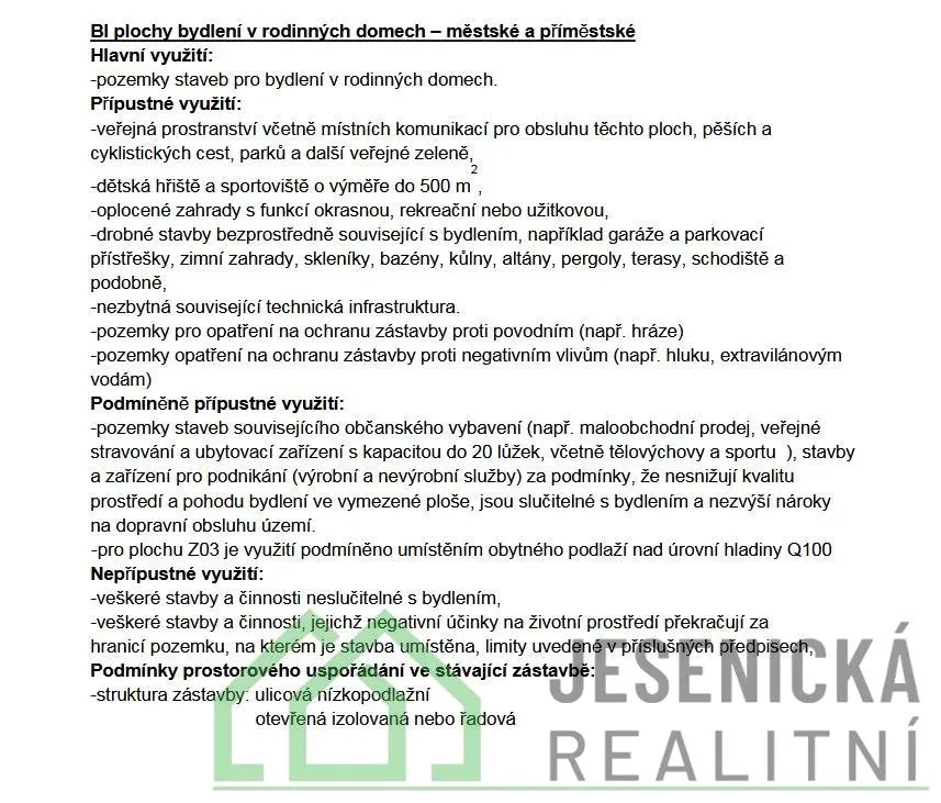 Dle územního plánu se pozemek nachází v ploše BI bydlení v rodinných domech, což umožňuje výstavbu rodinného domu.