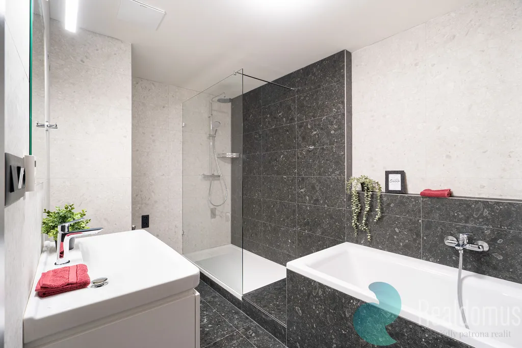 • Koupelna: Luxusní vybavení zahrnuje sprchový kout, vanu a závěsné umyvadlo, samostatné WC