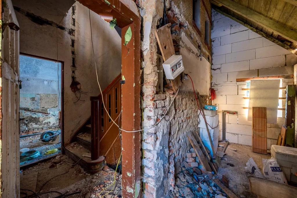 Tento dům je v dobrém stavebním stavu a co je nejlepší – s náročnou fází rekonstrukce se již začalo! Nemusíte se obávat demoličních prací, ty jsou již za vámi. Původní podlahy i nenosné příčky byly odstraněny, a co je klíčové pro dlouhodobou pohodu, celý dům prošel důkladnou izolací obvodového zdiva injektážemi. Již se rýsuje budoucí koupelna a samostatná toaleta v přízemí a částečně jsou připraveny i rozvody elektřiny a vody, což vám ušetří spoustu času a úsilí.