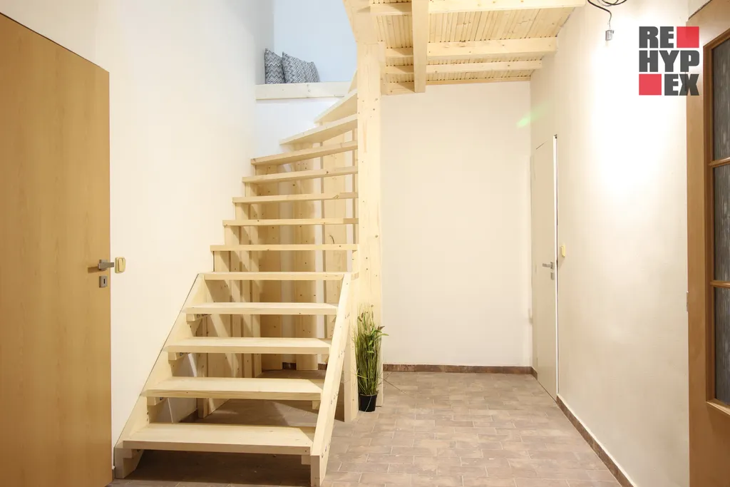 Dispozice domu je 4+kk. V přízemí se nachází komora (spíž), samostatné WC, prostorná kuchyně, předsíň a sklep s klenutým stropem z kamene. V prvním patře naleznete útulný obývací pokoj, pracovnu a prostornou koupelnu s luxusní rohovou vanou, bojlerem, závěsným WC Geberit a přípravou pro pračku a myčku. Třešničkou na dortu je rozsáhlý podkrovní prostor, který lze buď ponechat v současné podobě nebo s minimálním zásahem přepažit na několik menších pokojů dle přání majitele.
