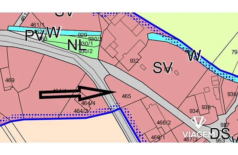 - Parcelní číslo 465 (556 m², 100% podíl, LV 326)