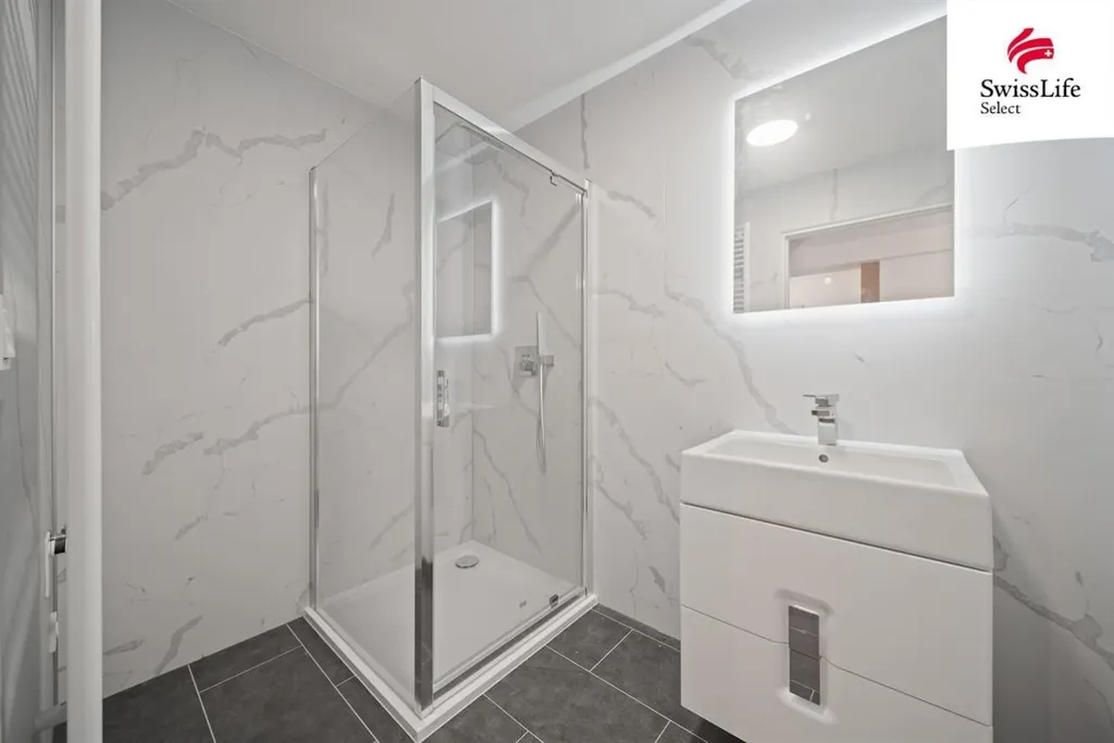 Svou elegancí a provedením Vás okouzlí také vstupní hala a společné prostory, budova sloužila jako základní škola a prostor byl pojat velice citlivě a maximálně efektivně.