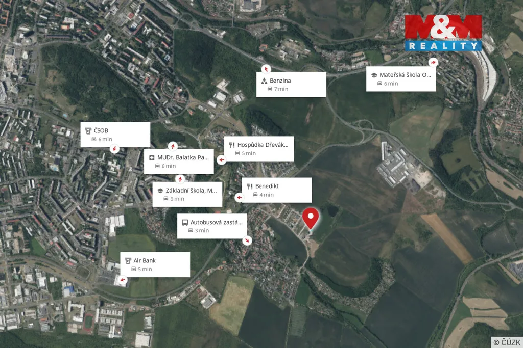 Lokalita nabízí ideální kombinaci klidu a dostupnosti. V bezprostředním okolí se nachází příroda, pole a vodní plocha vhodná k procházkám i odpočinku. Zároveň je obec vzdálena jen pár minut jízdy od města Most, kde naleznete kompletní občanskou vybavenost včetně obchodů, škol, zdravotních služeb i volnočasových aktivit.