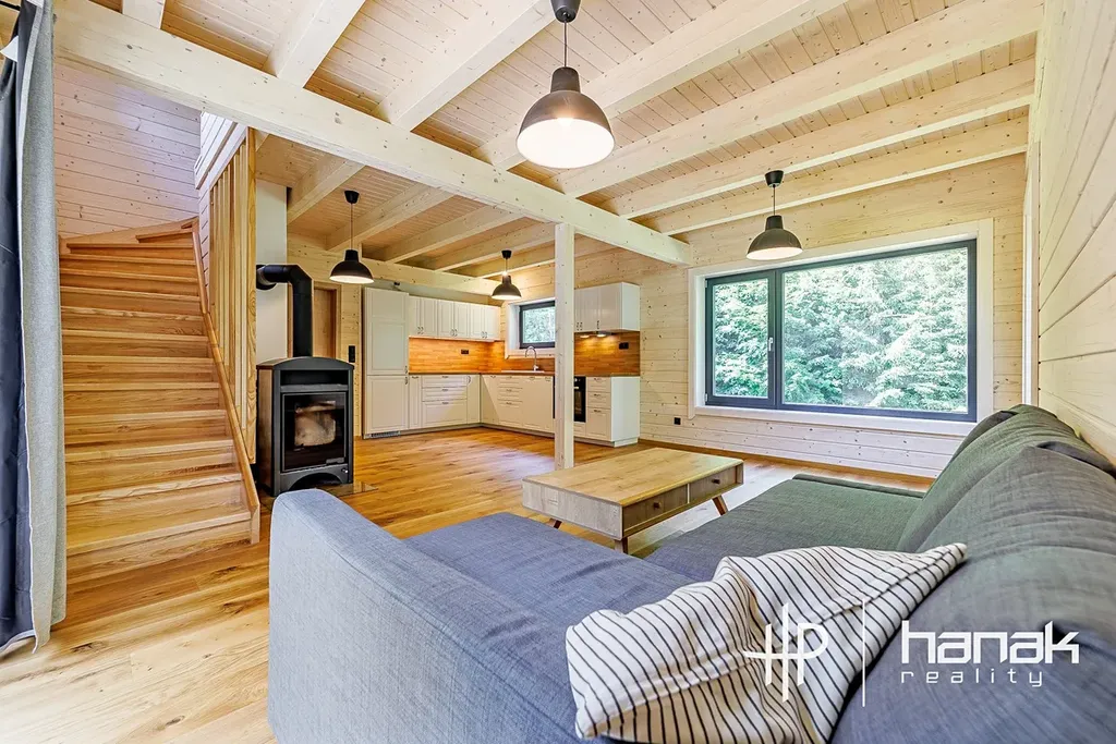 Vážení klienti, představujeme Vám krásnou dřevostavbu nízkoenergetické stavby rodinné rekreace k trvalému bydlení s dispozicí 4+kk v klidném prostředí lesa nedaleko obce Líšnice.