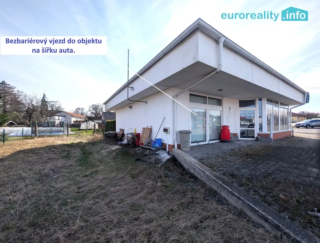 Objekt se nachází ve velmi dobrém stavu a disponuje bezbariérovým přístupem a velkým vjezdem dovnitř objektu, což zajišťuje komfort pro zákazníky. Uvnitř je menší koupelna, obchodní regály a recepce pro přijímání klientů a placení. K dispozici je cca. 10 parkovacích míst.