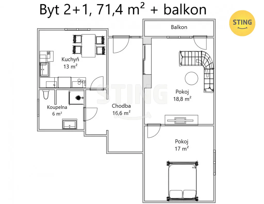 Chcete dostávat emailem podobné nabídky pronájmu bytů 2+1 v Topolné?