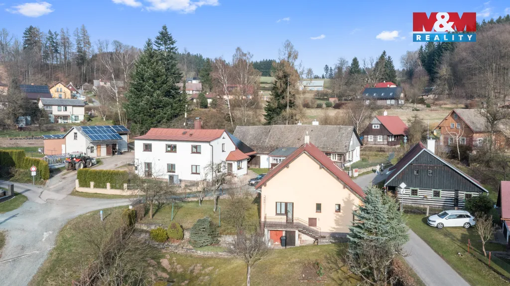 Prodej prostorného rodinného domu (užitná plocha 240 m²) na samostatném pozemku 2 321 m² v klidné části Bystrého v Orlických horách. Smíšená konstrukce, 2 nadzemní podlaží, částečně podsklepený. Dispozice: vstupní chodba, koupelna, po pravé straně velký pokoj s kamny, navazující zadní pokoj, obývací pokoj se vstupem na zahradu, menší kuchyně; v podkroví dva pokoje a ložnice, vstup na půdu. Nemovitost prošla částečnou rekonstrukcí (okna a zateplení přístavby, střecha), dům v původním, velmi dobrém stavu. Ideální pro trvalé bydlení i rekreaci. Volné ihned. Pro více informací volejte makléřovi. Těšíme se na prohlídku.
