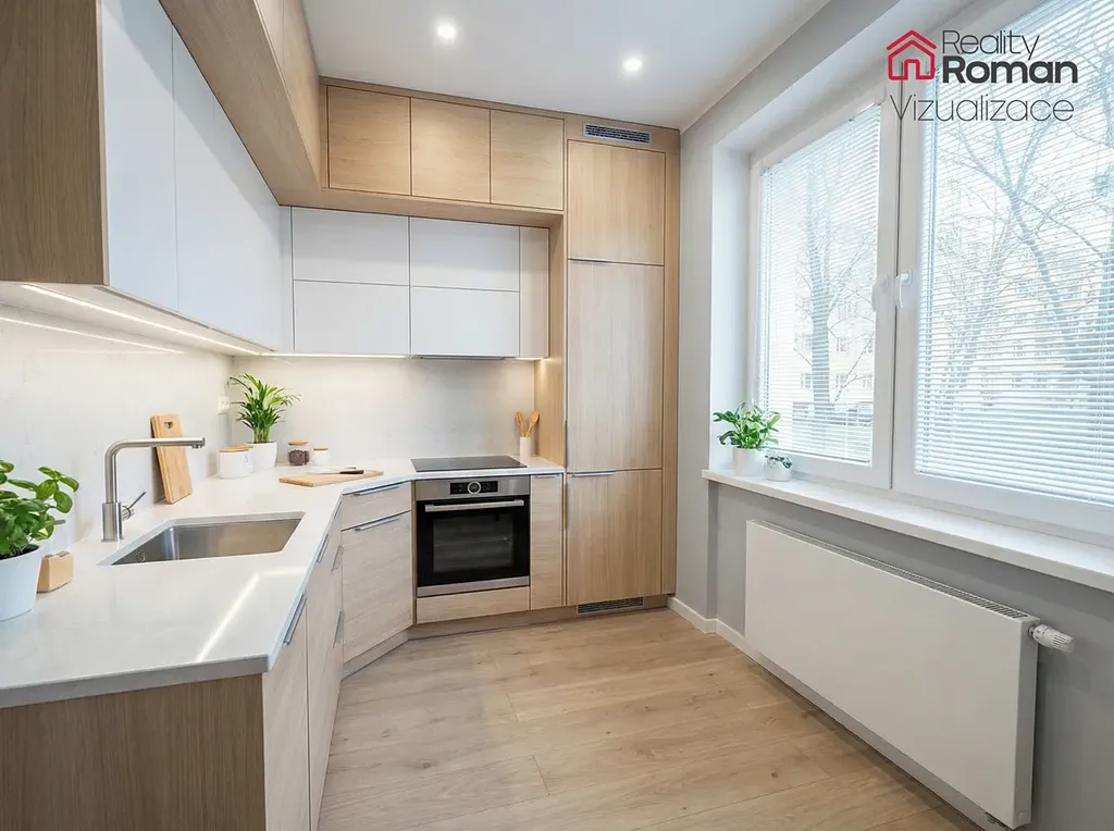 Velkou výhodou je možnost dokončení bytu dle vlastních představ – budoucí kupující si může zvolit finální podobu povrchů, interiérových dveří i kuchyňské linky, případně využít navržený design dle přiložené vizualizace.