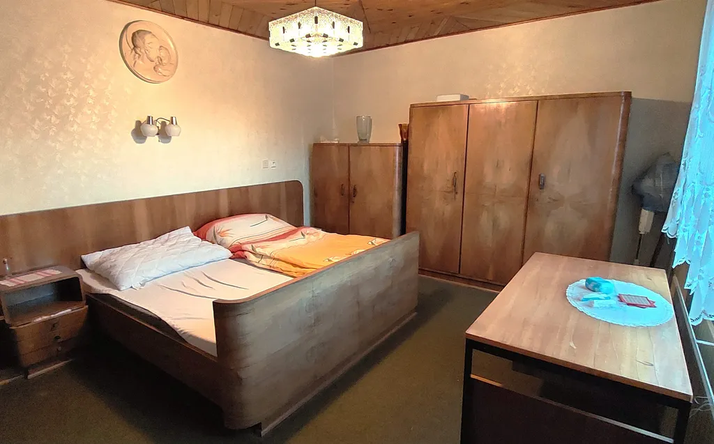 Dispozice: 2x vstupní chodba, 4 pokoje (jeden průchozí), kuchyň, koupelna s vanou a sprchovým koutem, 2 komory a WC.