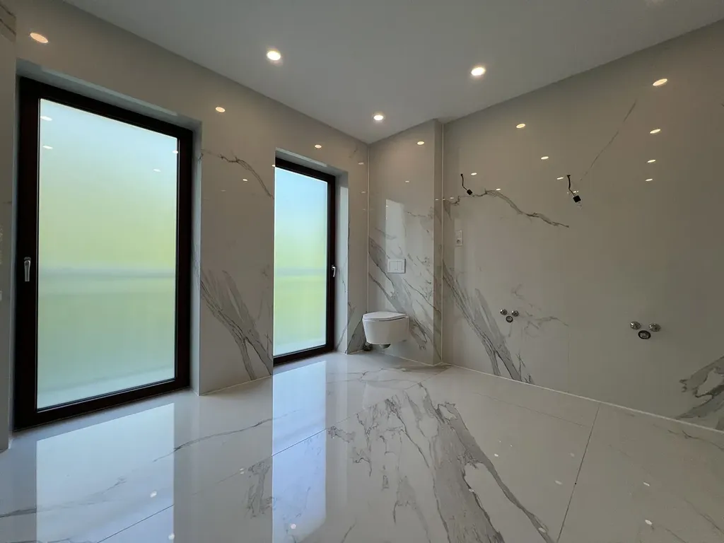 Dům je vybaven inteligentní domácností – osvětlení, vytápění nebo vjezdovou bránu můžete ovládat pohodlně pomocí mobilní aplikace. Součástí je také rekuperace a klimatizace v každém pokoji.