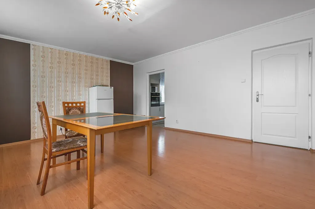 Dominantou bytu je prostorný obývací pokoj, který přirozeně vybízí k odpočinku i setkávání s rodinou. Samostatná krásná kuchyň poskytuje dostatek místa.