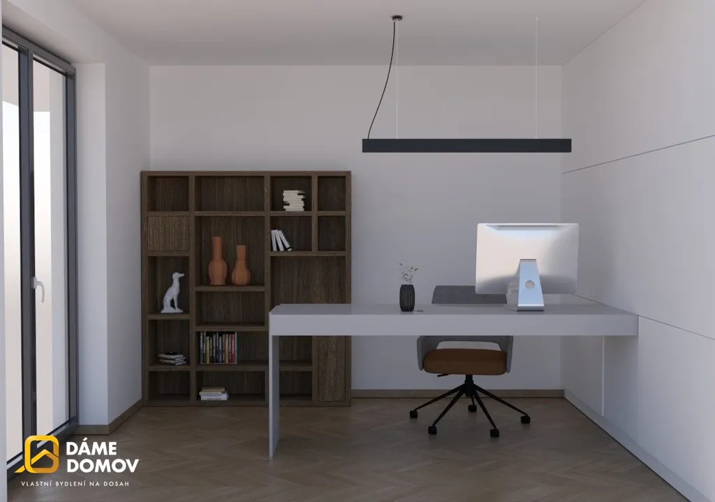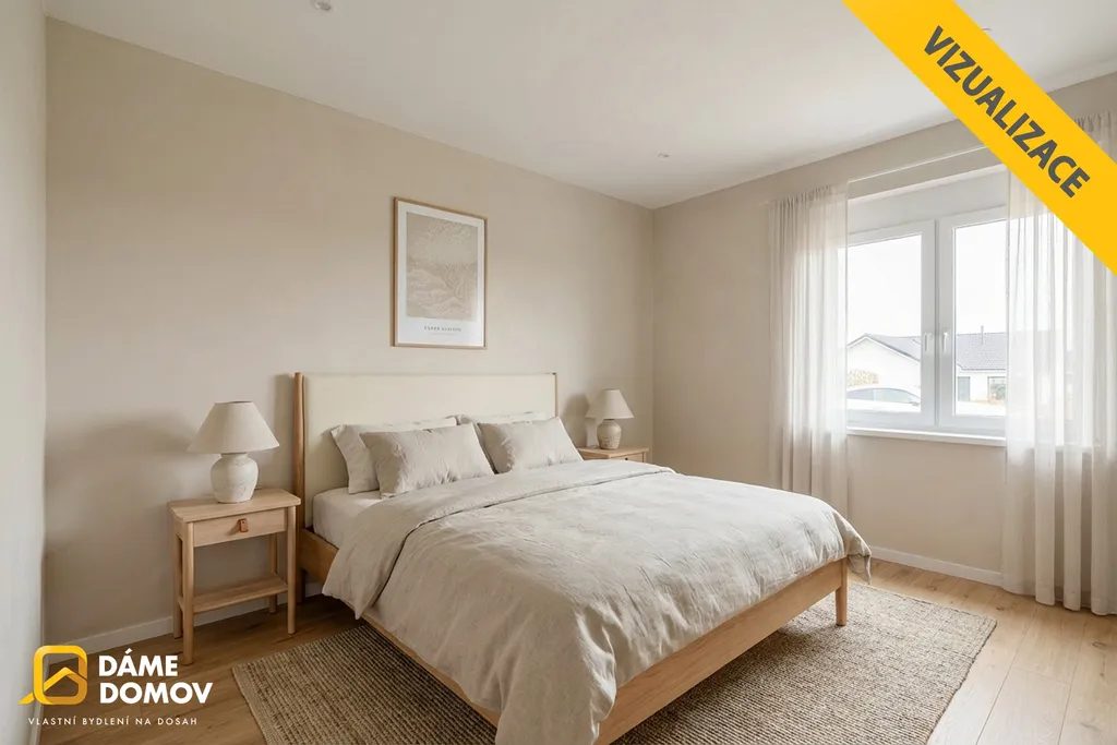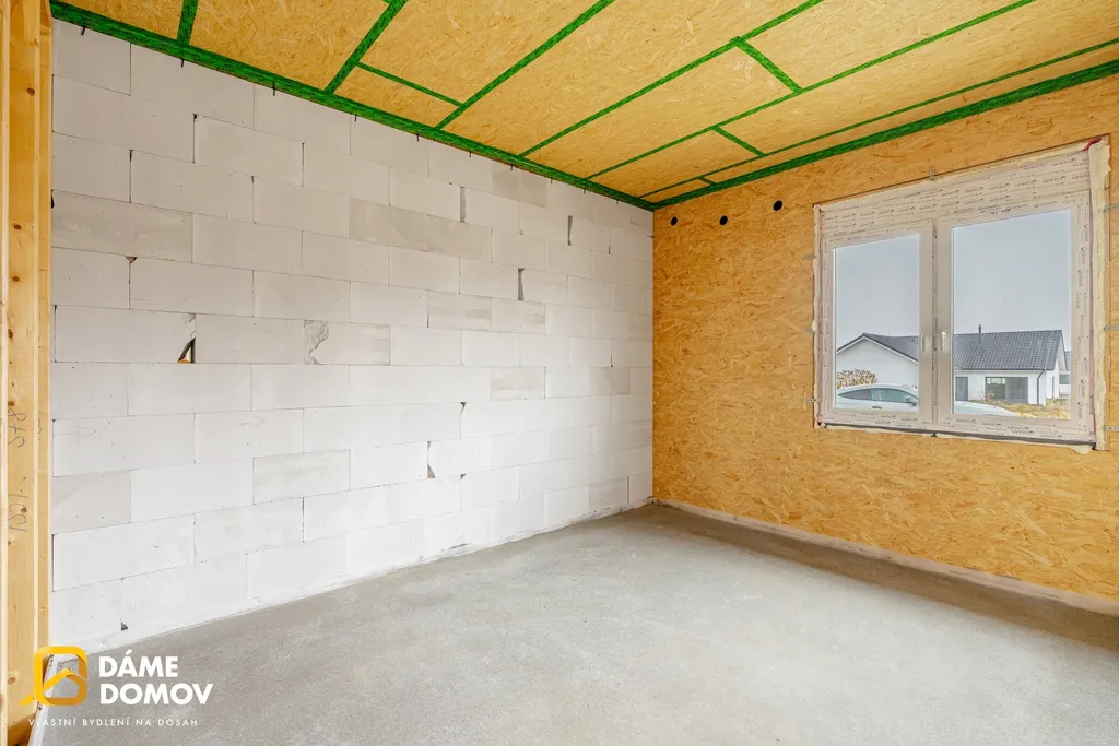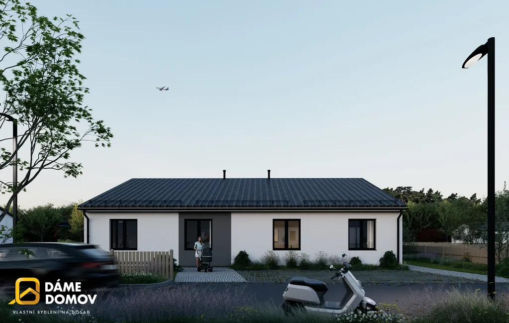 Dům se skládá z prostorného obývacího pokoje propojeného s kuchyní. Elegantní koupelna je vybavena vanou a sprchovým koutem. Dále zde najdeme 3 ložnice, samostatné WC a technickou místnost. K domu bude náležet parkovací stání pro 2 automobily a venkovní terasa.