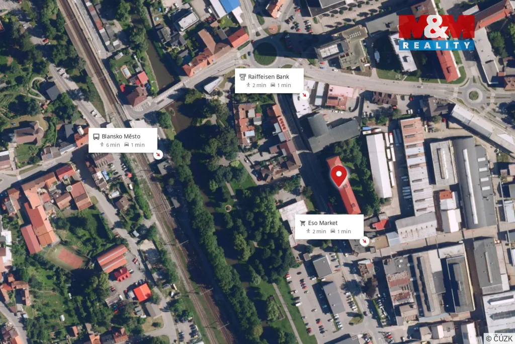 Velkým benefitem je poloha přímo u vlakové zastávky Blansko-město. Do centra Brna se tak dostanete přibližně za 25 minut, často rychleji než z některých okrajových částí Brna. Náměstí, obchody i nemocnice jsou vzdáleny jen několik minut chůze. Cena uvedena za nemovitost.