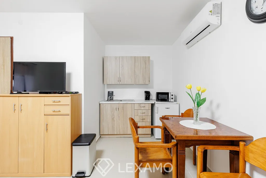 Jednotka se skládá z prostorného obývacího pokoje, kuchyňského koutu a koupelny s toaletou.