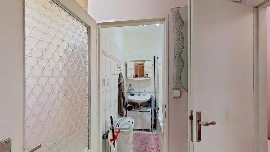 Dispozici bytu tvoří: obývací pokoj, dva pokoje, kuchyně, komora, koupelna s vanou, samostatné WC, chodba.