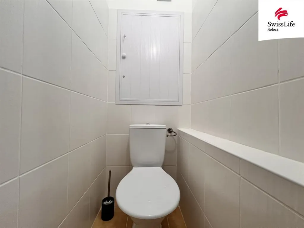 Koupelna je vybavena sprchovým koutem, toaleta je samostatná, což zvyšuje komfort bydlení. V prostorné chodbě je k dispozici vestavěná šatní skříň, která nabízí dostatek úložného prostoru pro oblečení i další věci.