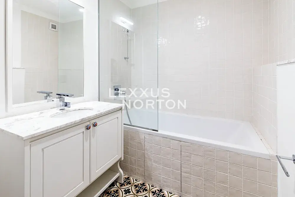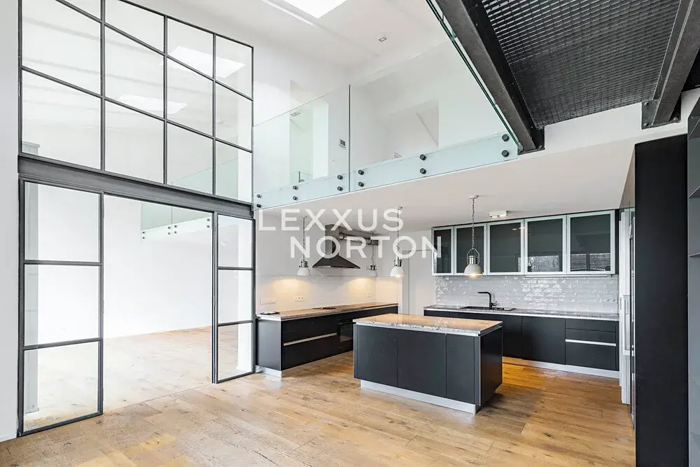 Ve spodním patře se nachází obývací pokoj propojený s kuchyní a vstupem na terasu orientovanou do klidného, soukromého vnitrobloku. Dále jsou zde dvě ložnice s vlastními koupelnami a šatnami. Horní patro mezonetu nabízí dvě samostatné galerie, dvě koupelny a tři ložnice.