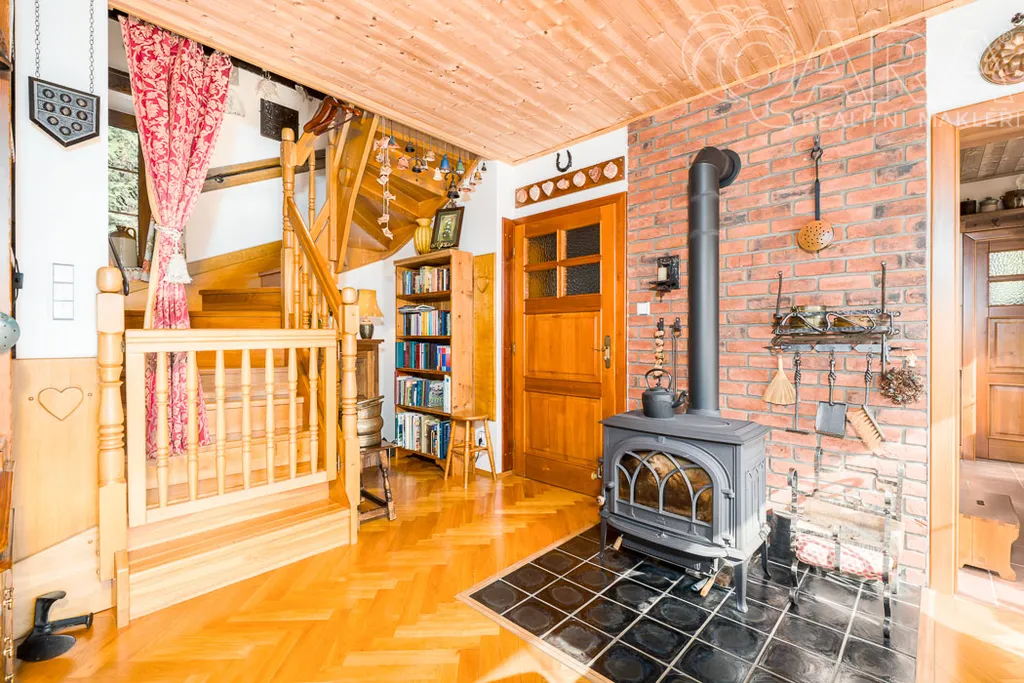 Hledáte bydlení v blízkosti přírody ? Nabízíme Vám k prodeji krásný rodinný dům o dispozici 4+kk o užitné ploše 138 m2. Tento nízkoenergetický rodinný dům se nachází v klidné části České Kamenice nedaleko Českého Švýcarska. Dům Vám nabízí krásný obývací pokoj, propojený s kuchyňskou linkou a krásným výhledem do udržované zahrady a vstupem na terasu s pergolou. Dále máte k dispozici tři ložnice, dvě koupelny, toaletu, půdní prostor, venkovní zastřešené parkovací stání, zahradní domek a dřevník. V celém domě jsou podlahy z lakovaných dubových parket a všechny stropy jsou z borovicového dřeva. K vytápění domu slouží elektrický kotel, podlahové vytápění pod dlažbou v koupelnách, na chodbě a v kuchyňské části. Určitě oceníte i vytápění v litinových krbových kamnech od značky Jotul. K dispozici máte krásnou, udržovanou zahradu o celkové ploše 799 m2, která Vám nabízí dostatek soukromí s převážně stále zelenými keři a stromy. K parkování Vám poslouží stání pod dřevěným přístřeškem. Město Česká Kamenice Vám nabízí krásnou přírodu, procházky, obchody, restaurace, školy, školky. Domluvte si prohlídku a přijďte se sami přesvědčit o jedinečnosti tohoto místa.