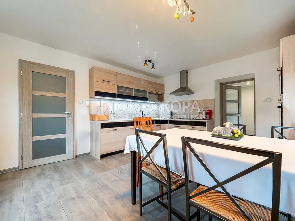 Dispozice domu umožňuje flexibilní využití – aktuálně funguje jako jeden celek, ale snadno jej lze upravit na dvougenerační bydlení (2 koupelny, 2 kuchyně).