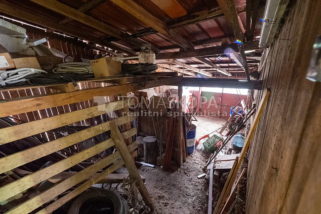 Součástí je také velká garáž a kůlna (78 m²), které poskytují dostatek prostoru pro parkování, dílnu i skladování.