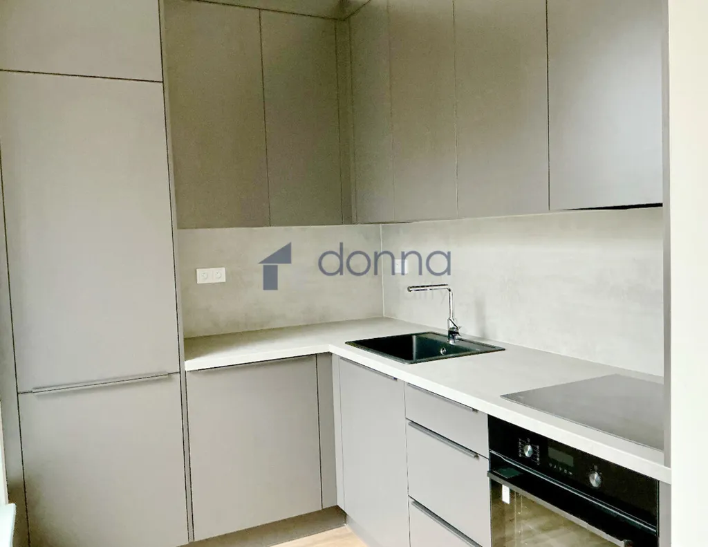 Byt je bez nábytku, k dispozici kuchyně (vybavená spotřebiči AEG, lednicí Liebherr a myčkou) spojená s obývacím pokojem, prostorná koupelna s velkým sprchovým koutem, velkoformátovým zrcadlem a toaletou