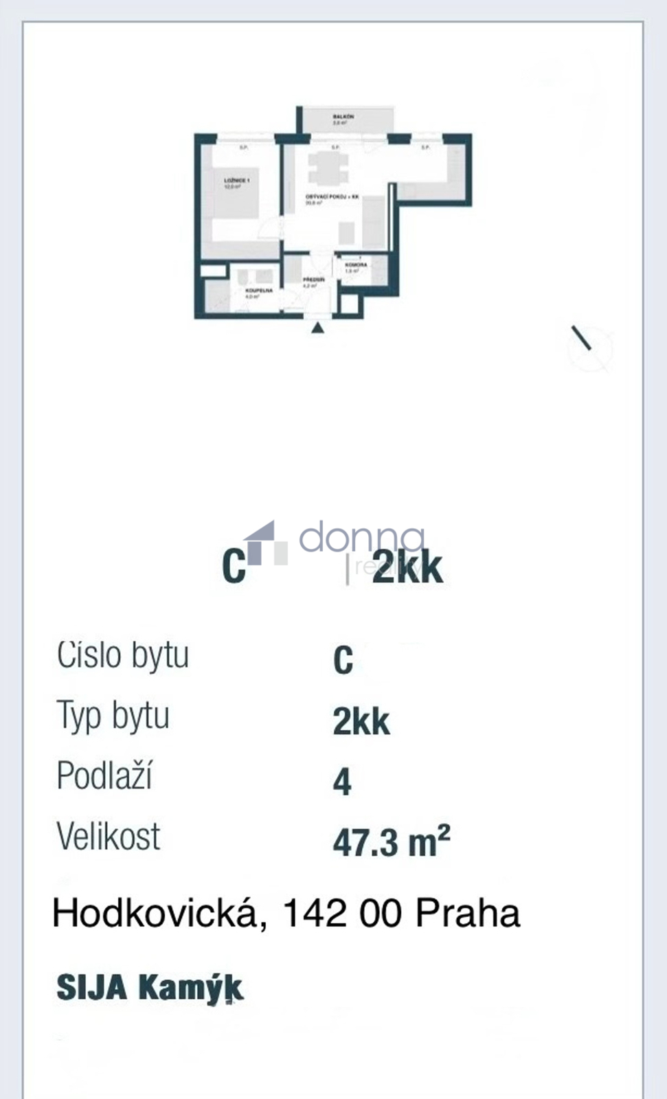 Nabízíme k pronájmu nový byt 2+kk, o ploše 47m2 + balkon 6,3m2, ve 4. podlaží v novém bytovém domě, ulice Hodkovická, Praha 4 - Kamýk.