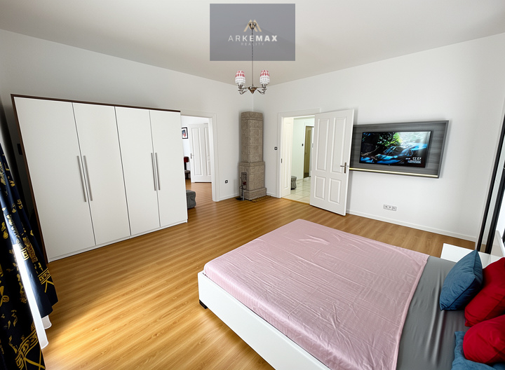 Dispozice bytu aktuálně zahrnuje dvě velké obytné místnosti (cca 25,9 m² a 25,6 m²), samostatnou kuchyni (11,9 m²), prostornou předsíň, koupelnu, WC a praktickou spíž. Zajímavostí je také samostatný menší pokoj, který historicky sloužil jako pokoj pro služku – dnes jej lze využít například jako pracovnu, dětský pokoj či šatnu.