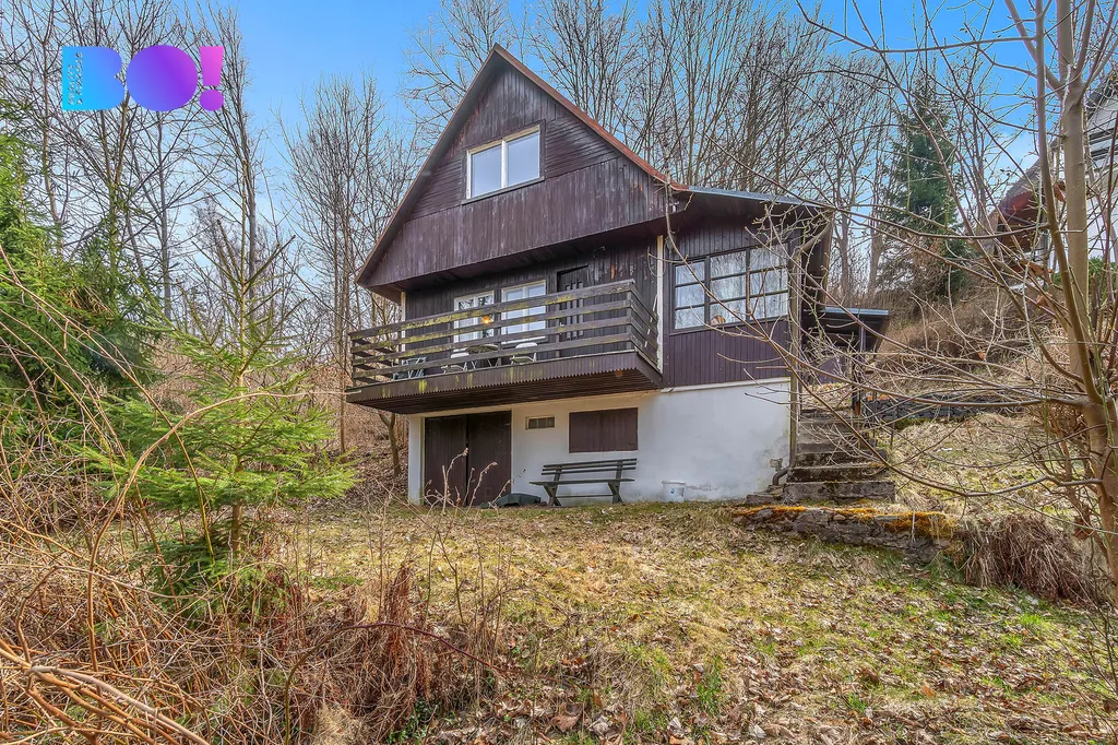 • Dispozice: 1.NP - vstup z prostorné verandy do hlavní obytné místnosti s balkonem a kuchyňským koutem, koupelna se sprchovým koutem, WC, schody do podkroví. 2 NP. ložnice v podkroví. Chata je podsklepená.