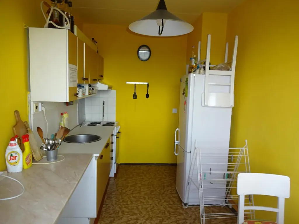 Byt se nachází v 11. podlaží panelového domu z výtahem. V bytě je jenom jeden průchozí pokoj. Plastová okna jsou orientovaná východ a západ. V kuchyni je starší kuchyňská linka s elektrickým sporákem, lednice, jídelním stolem a židlí. S obývacího pokoje je vstup na balkon. Koupelná je vybavená vanou a umyvadlem. V bytě je zavedený internet a kabelová TV (není v ceně). Dobré spojení do centra i ostatních částí města. Nájem činí 24.000 Kč/měsíčně + 8.000 Kč/6 os. zálohy na služby + záloha na elektřinu cca 3.000,-Kč bude napsaná na nájemníka. Byt je pro Vás volný od 1. 9. 2026.