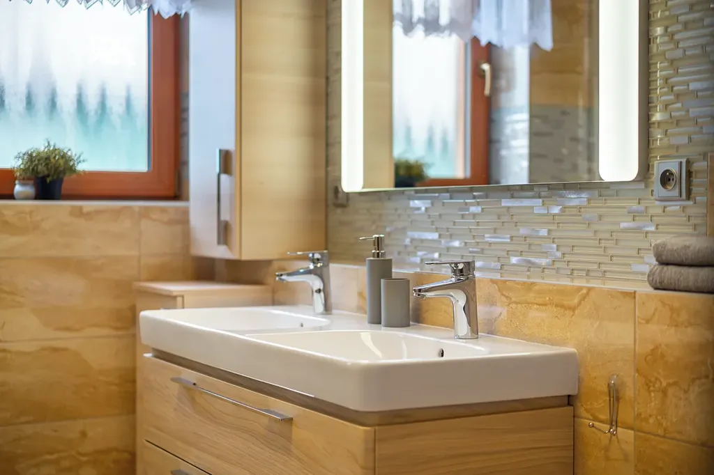 K dispozici jsou dvě koupelny, tři samostatné toalety, praktická spíž u kuchyně a další samostatná šatna u vstupu do domu. Další úložný prostor nabízí skladovací místnost v podkroví o velikosti cca 35 m².