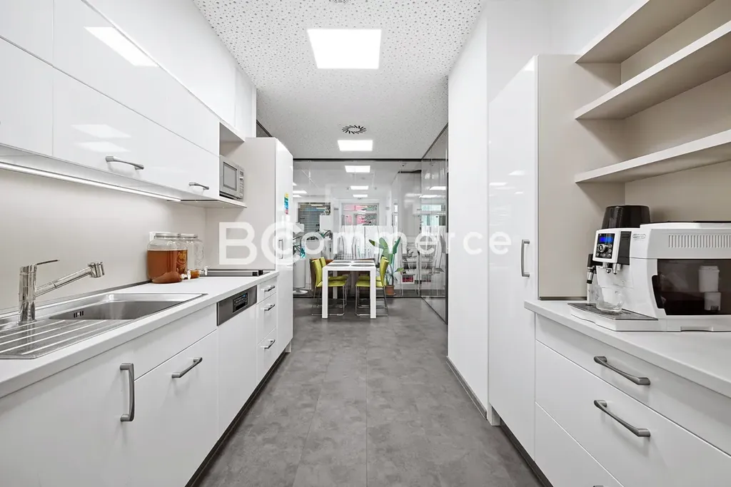 Ve výhradním zastoupení majitele nabízíme moderní bezbariérovou kancelářskou jednotku v přízemí bytového domu na Starém Brně na ulici Hlinky, nedaleko Mendelova náměstí. Jednotka má celkem 230m2 a je dělená na vstupní prostor (šatní část/zádveří), pak velkou open space kancelář, oddělenou velkou jednací místnost, menší jednací místnost a další dvě samostatné kanceláře. Samostatná vybavená kuchyňka má i jídelní část.