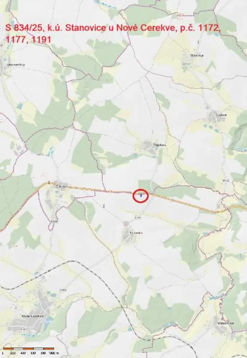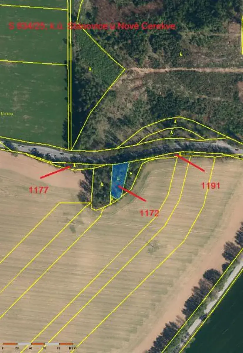 Jedná se o prodej 3 lesních pozemků o celkové výměře 1967 m2 (parc. č. 1172 o výměře 945 m2, parc. č. 1177 o výměře 514 m2 a parc. č. 1191 o výměře 508 m2), nacházejících se severně od obce Stanovice. Severní hranice pozemků probíhají podél silnice I/19, z ostatních stran jsou pozemky obklopeny pozemky jiných vlastníků. Pozemky jsou menších výměr a jsou zarostlé listnatými stromy a keři.