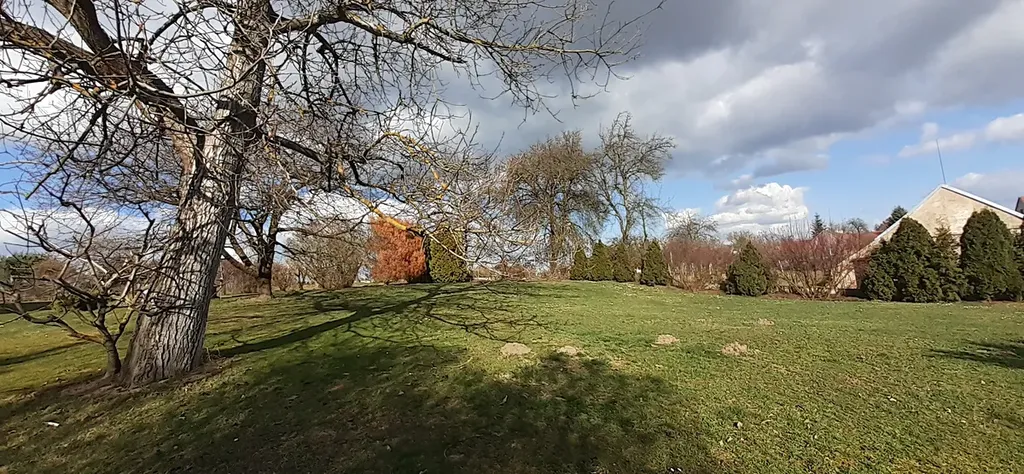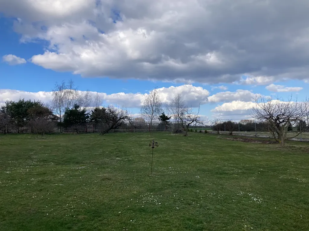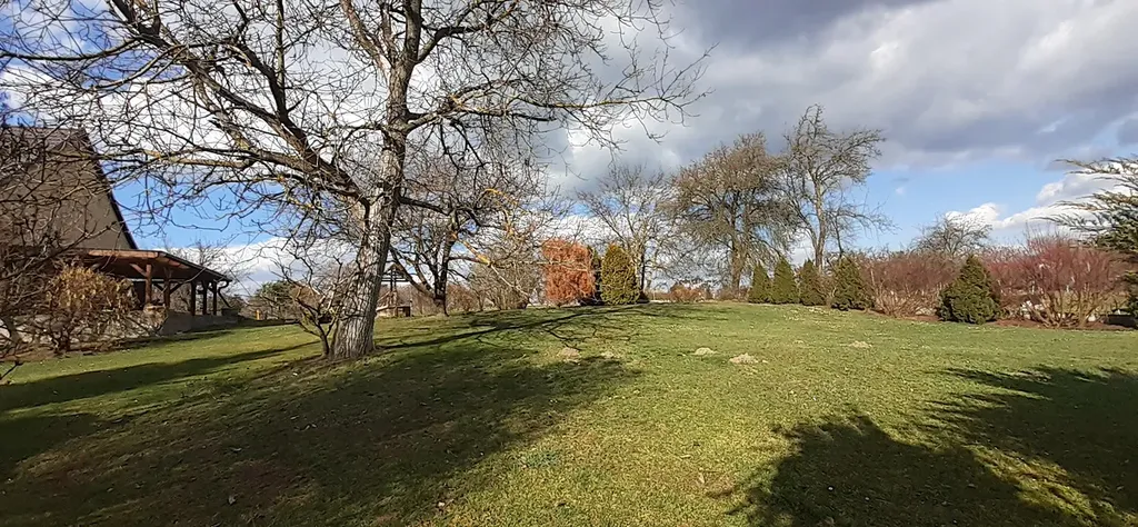 Dům je obklopen nádhernou rozhlehlou zahradou rozdělenou nenásilně na oblasti podle jejich využívání. Najdete zde ovocný sad, jahodoviště, travnaté hřišťátko pro malý fotbal nebo badminton, bylinkové záhony.
