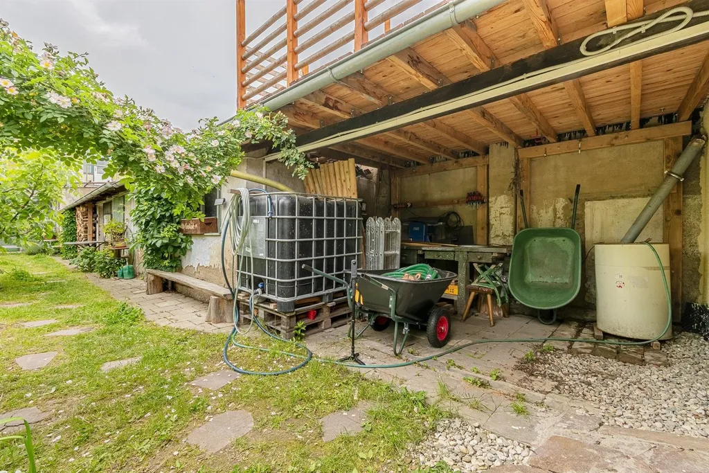 Dispozice budovy: v přízemí (1.NP) se nachází 2 byty (2+1 kompletně rekonstruovaný a 1+1 ve stavu k celkové renovaci) průjezd. V patře (2.NP) se nachází další 2 byty (2+1 a 1+1, oba ve stavu k renovaci, oba dva aktuálně pronajaté), dále pak půdní prostor pro případné další využití s sklep. Za domem se nachází pěkná zahrada s jezírkem, drobné stavby dřevárka, sklad, atd. a částečně podsklepený zahradní domek přebudovaný do krásného loftového 2+kk s velkou terasou.