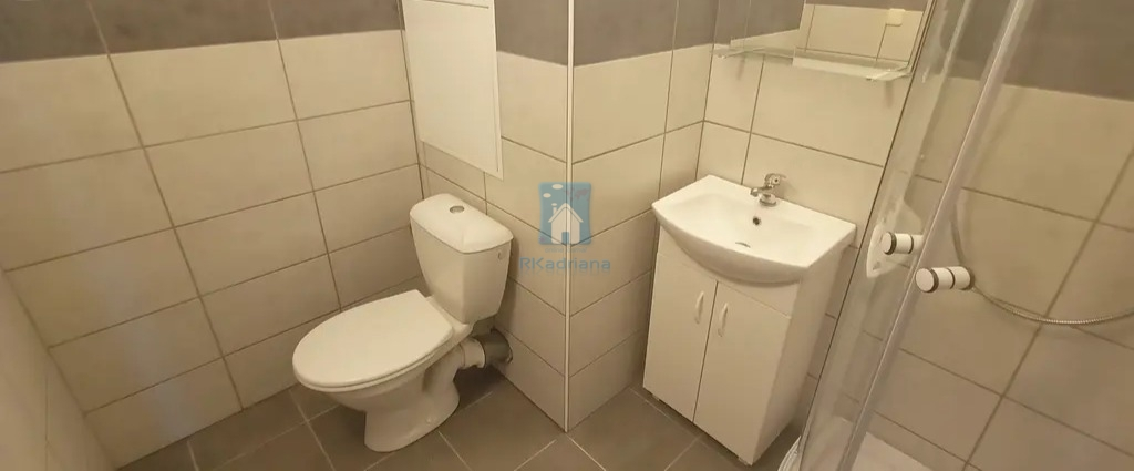 Dispozičně je byt řešen předsíní, koupelnou se sprchovým koutem a toaletou, ložnicí a obývacím pokojem, který je spojen s odděleným kuchyňským koutem. V kuchyňce je umístěna kuchyňská linka s přípravou na myčku, elektrický sporák a další úložné prostory. V obývacím pokoji najdete pohovku, konferenční stolek a několik úložných skříní, přičemž na oknech jsou žaluzie.