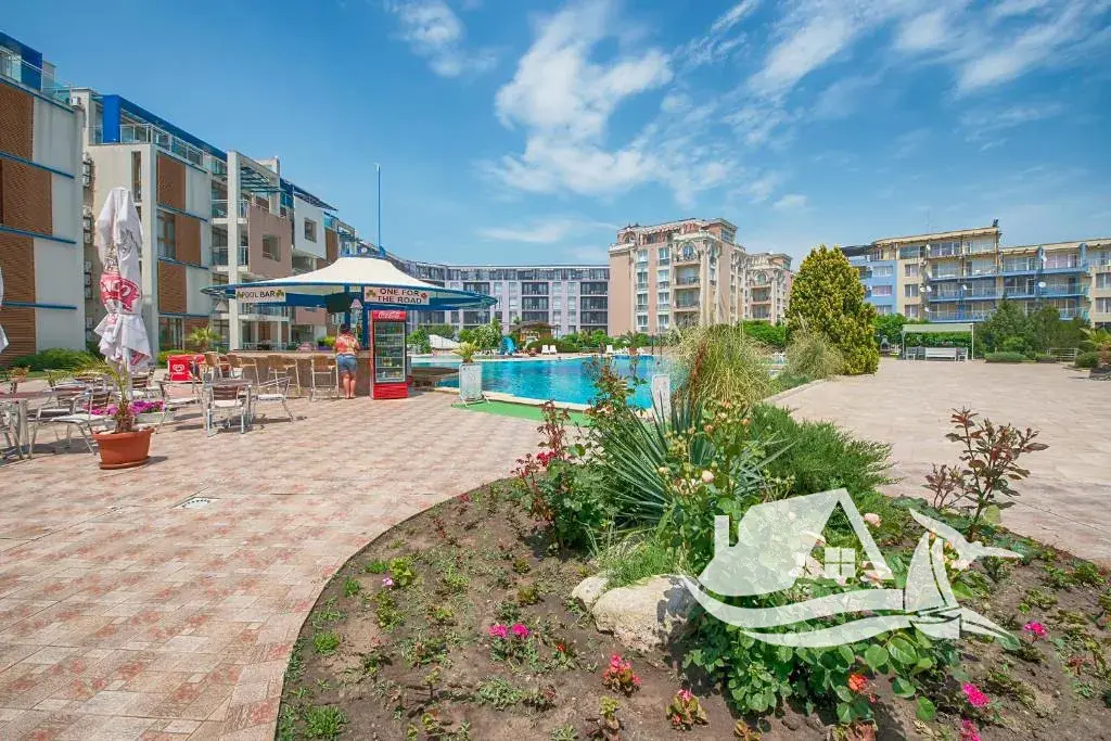 Komplex Sun City 1 je klidný, bezpečný a pečlivě udržovaný. Nabízí bazén s relaxační zónou, upravené zahrady, dětské hřiště a ostrahu. Atmosféra celého areálu je komorní a příjemná, což ocení nejen rodiny, ale i ti, kdo hledají klidnější zázemí v rámci živého letoviska.