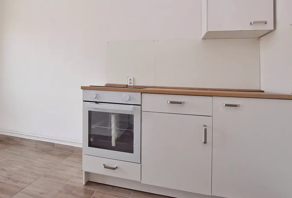 Byt prošel částečnou rekonstrukcí – je zde nová kuchyňská linka včetně vestavných spotřebičů (indukční varná deska, elektrická trouba), příprava na pračku, nové omítky, podlahy (dlažba v kuchyni a předsíni, vinyl v pokoji) a nové vstupní dveře.