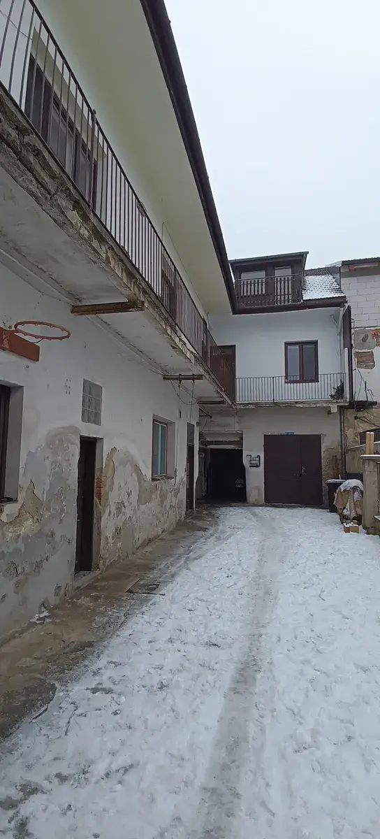 Prodej řadového domu o 2. NP se sedlovou střechou a obytném podkroví . Na uliční objekt navazuje dvorní křídlo s pultovou střešní konstrukcí a s pavlačí ve 2.NP. V zadní části pozemku je zahrada o výměře 240 m2. Celková zastavěná plocha je 265 m2. Objekt je v uliční části částečně podsklepen, užitná plocha v 1.NP do ulice je cca 45 m2 + průjezd cca 18 m2, dvorní křídlo – 73 m2. Ve 2.NP se nachází bytová jednotka 3+kk po celkové rekonstrukci o výměře 68 m2, dále byt 1+1 o výměře 42 m2. V podkroví je vybudována jednotka 5+kk o výměře 120 m2 se dvěma samostatnými vstupy, kterou lze s minimálními zásahy rozdělit. Dvorní prostor je od zahrady oddělen průchozí dílnou-garáží o celkové ploše 32 m2. Nemovitost je s v výjimkou nově zbudovaných jednotek určena k celkové rekonstrukci. Dle ÚP je přípustná stavba o výšce 16 m po římsu a sedlová střecha o sklonu 45st.